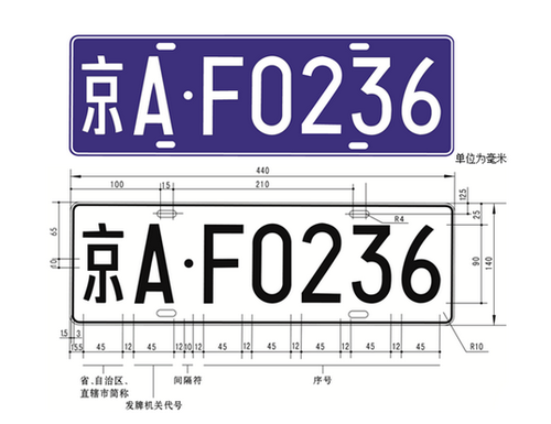 根据《中华人民共和国机动车号牌(GA 36—2014)》规定:
