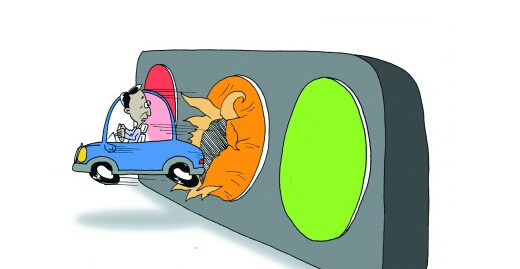 黄灯,本意是提醒来往车辆注意,提前刹车。生活中却慢慢被车主理解成,赶快加速,否则得再等一次红灯。每次黄灯亮起,距离最近的汽车十有八九是加大油门往前冲,在它带领下,随后两三辆甚至更多车辆,会紧紧跟随,希冀压着黄灯过。只有实在抢不过,才会死心塌地刹车等候。