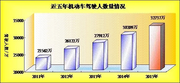据公安部交管局统计,截至2015年底,全国机动车保有量达2.79亿辆,其中汽车1.72亿辆;机动车驾驶人3.27亿人,其中汽车驾驶人超过2.8亿人。